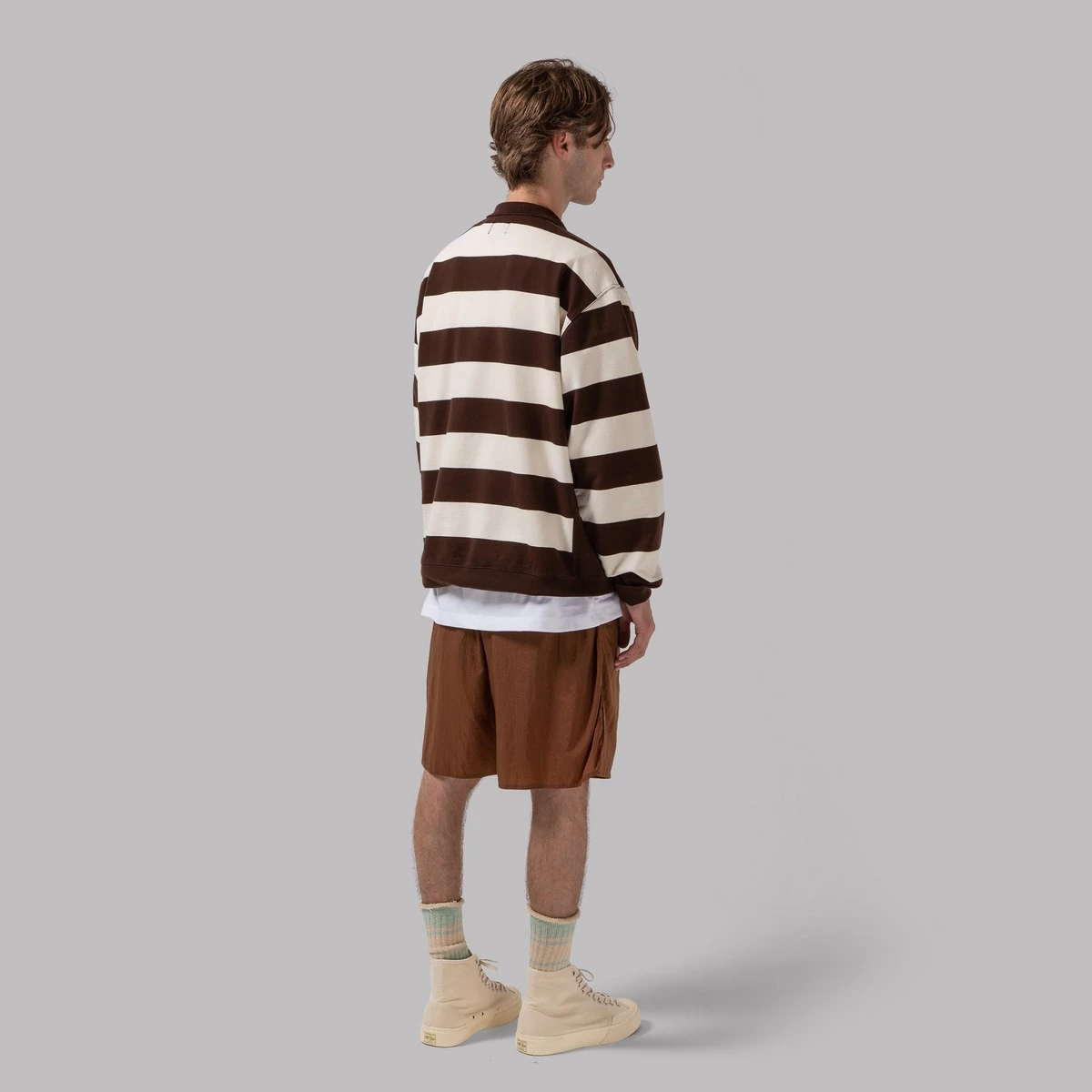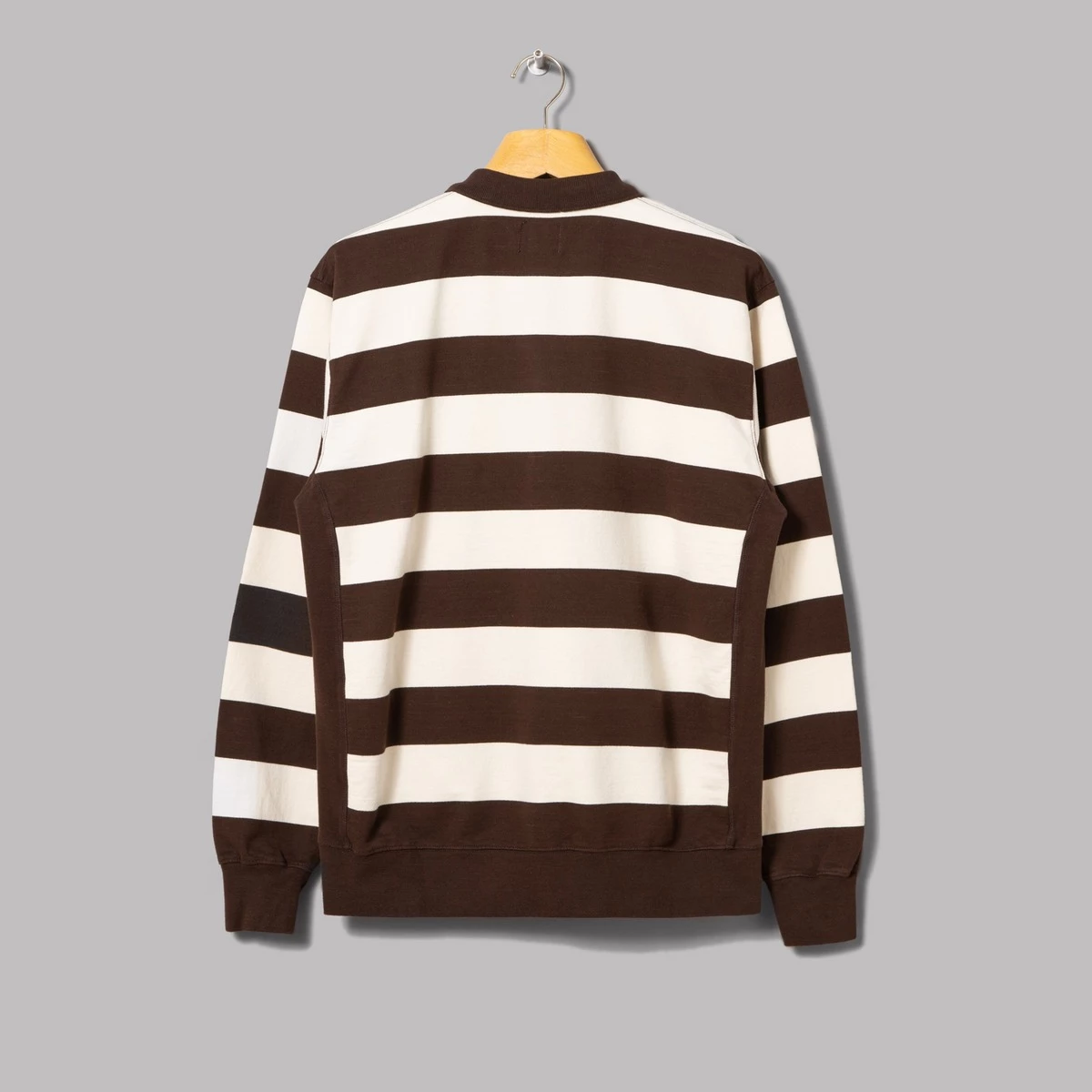 Oi Polloi Sportswear Co. (E.g. yours truly) have concocted this rather fetching Rugby Shirt number, and for what it’s worth, we think we’ve done a pretty phenomenal job of it. Based on athleisure shapes from yore, we’ve dished out some of the best cotton jersey fabric we could lay our filthy mitts on to make this downright classic of the scrum-schmutter variety. There’s a fair few evening’s entertainment to be had thanks to the plinkity-plonk of those premium press studs too.